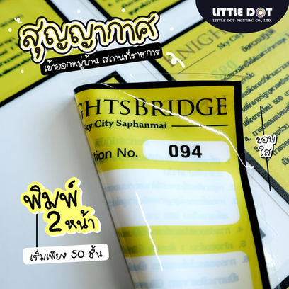พิมพ์ 4 สี วงกลม / สี่เหลี่ยมจตุรัส หรือไดคัทตามทรง ขนาดไม่เกินในตาราง พิมพ์ระบบ UV JET หมึกทนแดด 1 ปี